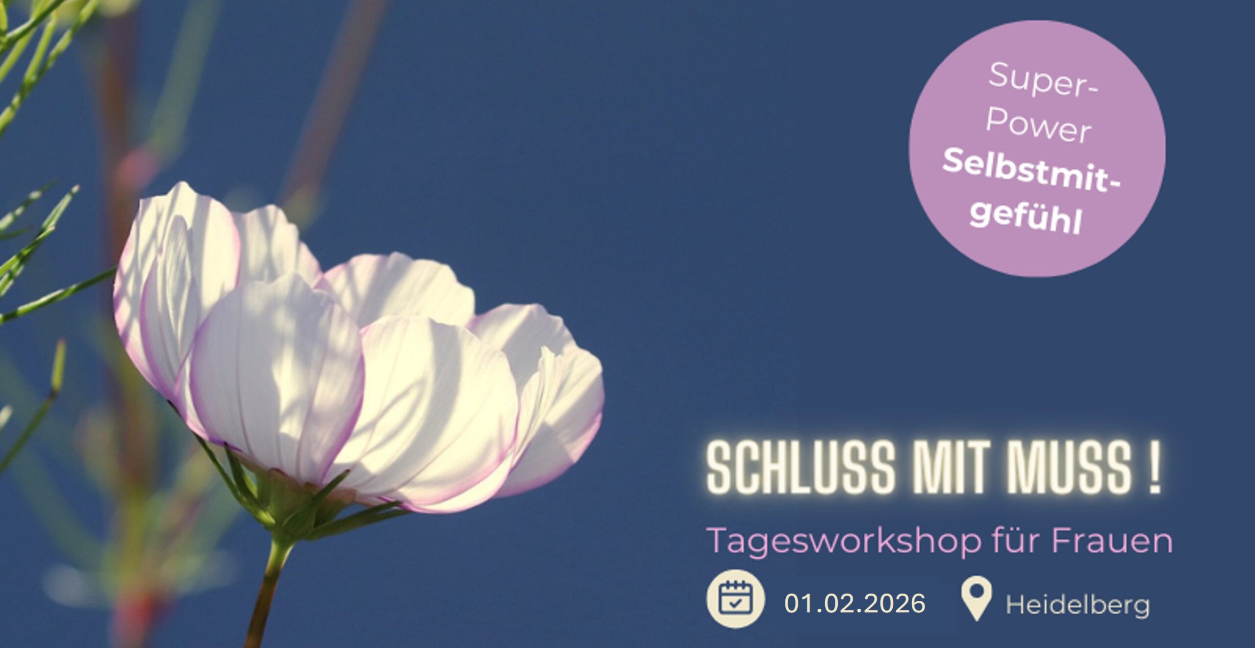 Im Schluss-mit-Muss-Workshop erfährst du Spannendes über die Super-Power Selbstmitgefühl und erlebst, wie es sich anfühlt, wenn du dich mit dieser mitfühlenden Haltung dir selbst zuwendest.